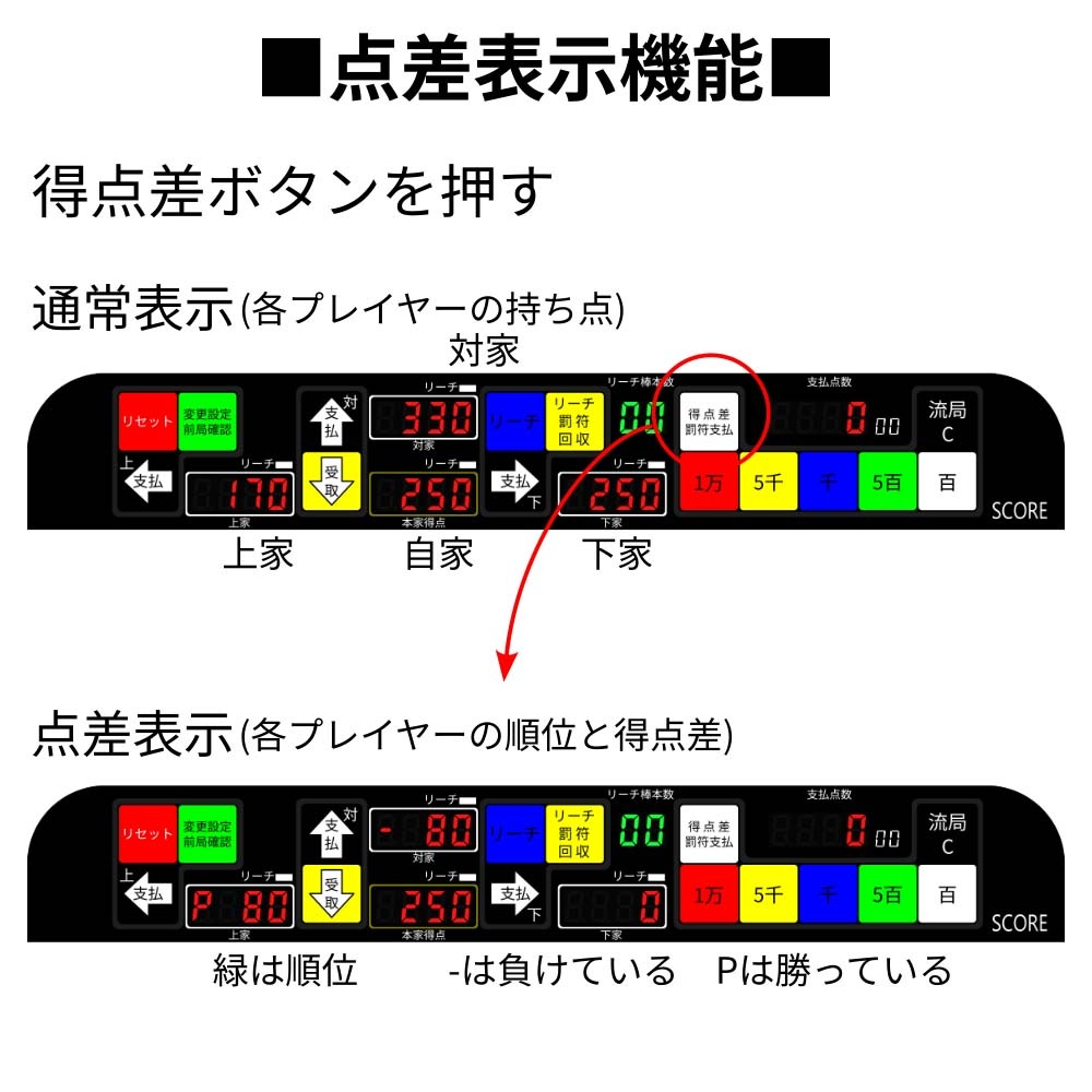点棒の代わりに簡単なボタン操作で点数の受渡しを行います。