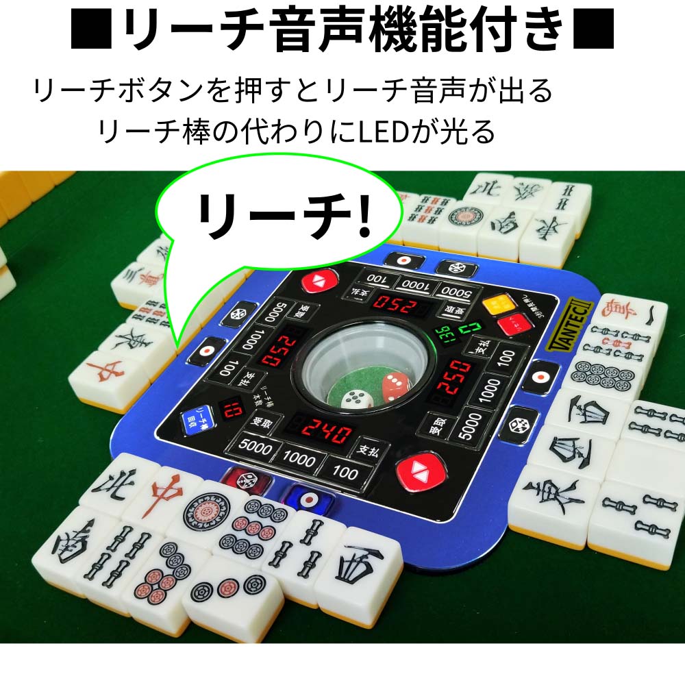 VANTEC2-CDモデルは点棒を使用せずに持ち点数などを表示するデジテンボウの機能がサイコロBOXに付いています。